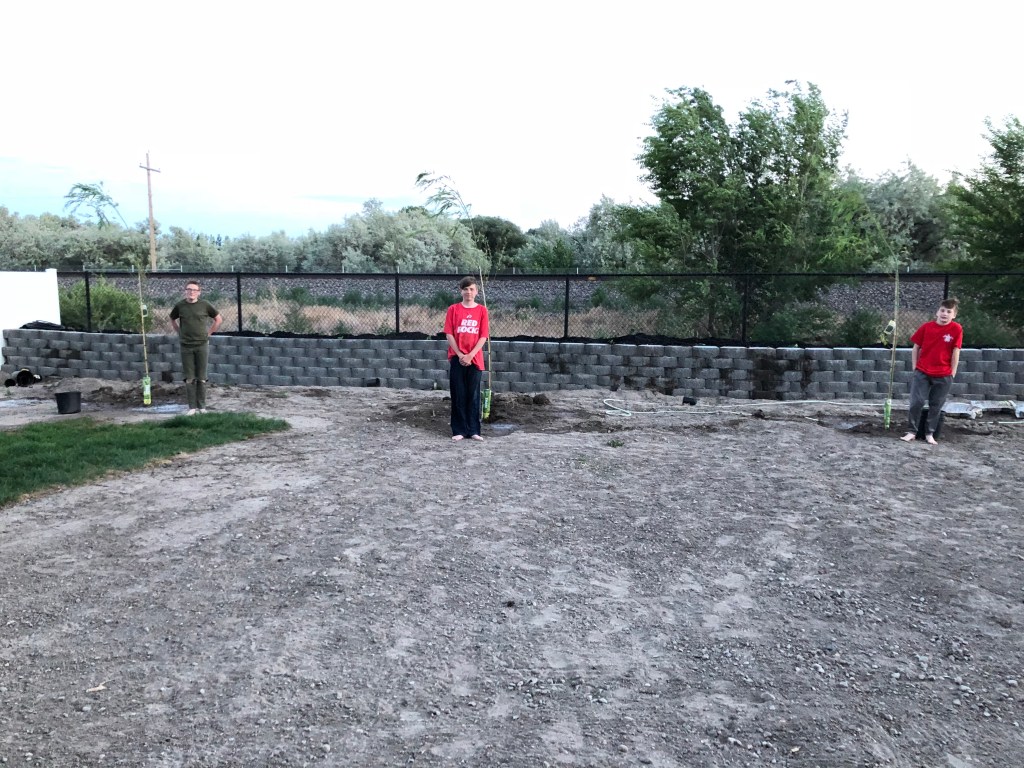 As you can see in the last picture, our tree on the right isn’t doing well. The tree started budding then we hit a cold spell and all the leaves died.