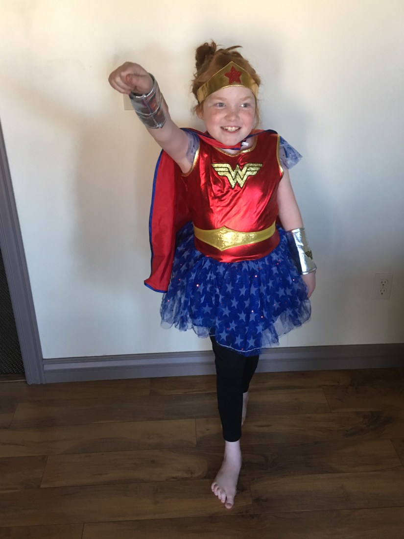 But almost on cue, I see my cute Wonder Woman running back down the cul-de-sac.